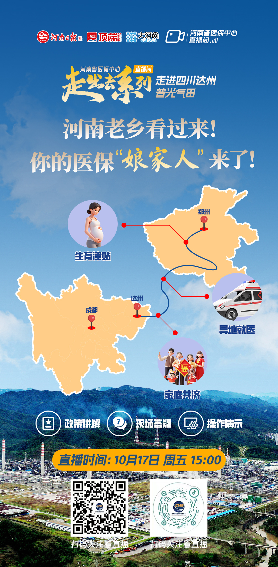 大河网讯10月17日下午3点,河南省医保中心直播间将准时开播。为了让广大参保群众足不出户就能了解医保政策,河南省医疗保障服务中心与大河网联合打造了“河南省医保中心直播间”,通过直播“面对面”向广大参保群众提供政策咨询,“零距离”为参保群众答疑解