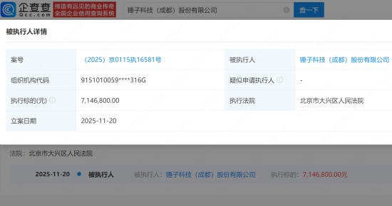 曾因“真还传”多次登上话题中心的罗永浩,再度走进公众视野。企查查APP显示,近日,锤子科技股份有限公司新增一则被执行人信息,执行标的714万余元,执行法院为北京市大兴区人民法院。作为曾经轰动创投圈的科技品牌,锤子科技的债务纠葛,与罗永浩坚持多年的