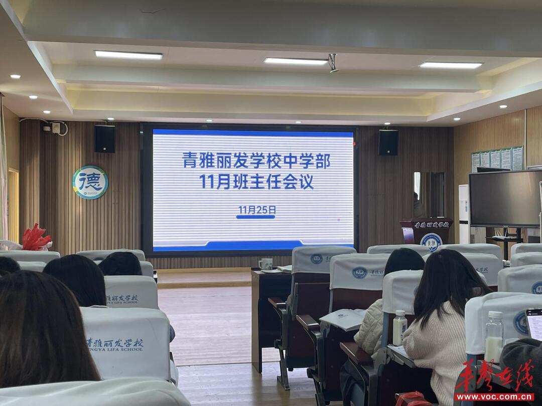 华声在线通讯员史佳洁班级文化是校园里无声的滋养,是学生成长最深厚的土壤。为深化立德树人根本任务,进一步提升班主任建班育人能力,打造有凝聚力、有特色的班集体,11月25日,长沙市天心区青雅丽发学校中学部召开了以“班级文化建设”为主题的11月班主任工