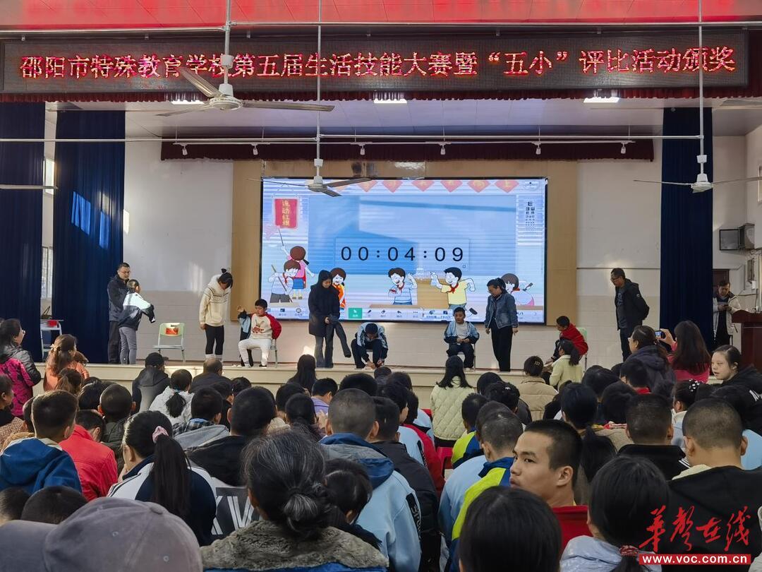 华声在线11月27日讯11月25日,邵阳市特殊教育学校校园内气氛热烈、暖意融融,以“提高学生生活技能,养成良好生活习惯”为主题的第五届生活技能大赛在学校礼堂举行。本届大赛在往年基础上创新升级,同步开展了别开生面的“五小”评选颁奖活动,旨在多维度表彰