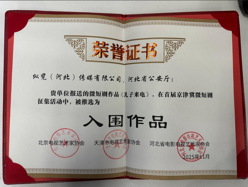 纵览客户端讯近日,纵览传媒笔尖短剧工作室制作的反诈微短剧《儿子来电》获得多项荣誉,在“首届京津冀微短剧征集推介”活动中,获得微短剧“作品入围奖”。此外该剧还荣获“2025年河北省网络视听优秀作品”。“首届京津冀微短剧征集推介”活动获奖情况河北省