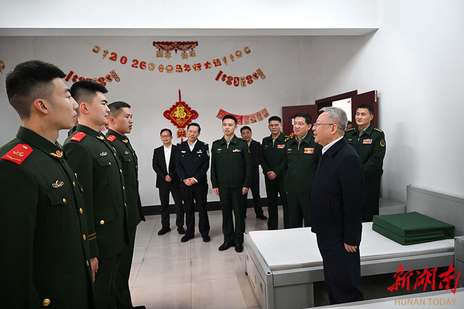 2月14日,省委书记沈晓明看望慰问驻省委大院执勤武警,向大家致以新春祝福,并通过他们向全省坚守在执勤岗位的武警官兵致以诚挚问候。沈晓明来到驻省委大院武警中队,实地察看官兵值班室、宿舍、食堂,与官兵们面对面交流,了解大家的工作、学习和生活等情况