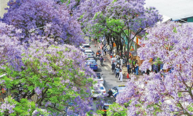 4月30日,2026年蓝花楹滇风盛夏季——五华・景洪・芒市三城联动文旅活动在昆明教场中路蓝花楹音乐广场举办。