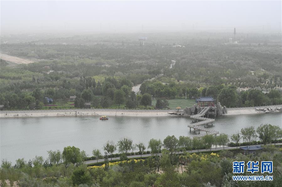 5月25日,宁夏灵武市上空沙尘弥漫。当日,宁夏多地遭遇大风沙尘天气。新华社记者 王鹏 摄