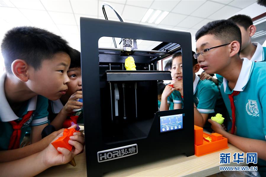 6月7日,山东青岛通济实验学校的学生在3D打印课堂上打印自己设计的作品。当日是山东青岛通济实验学校的“科技课堂”活动日。今年以来,该校面向各年级学生开设了自主选修科技课,学生们结合自身兴趣和爱好,进行机器人足球、3D打印、小火箭发射、Mbot小车等特色科技课程的学习,激发小科技爱好者们的创新意识和探索精神,让他们在丰富多彩的活动中成为小“创客”,发展新特长。新华社发(梁孝鹏摄)