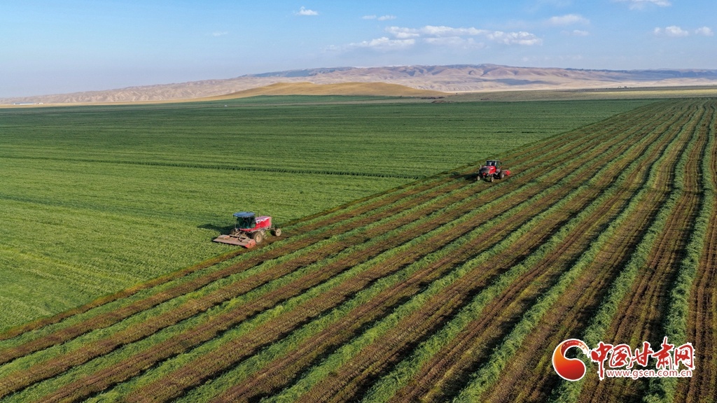 10月15日,地处祁连山北麓的甘肃山丹马场迎来燕麦草收割季。广袤的田野上,大型割草机械轰鸣作响、往来穿梭,将连片长势喜人的燕麦草整齐割倒,拉开了今年燕麦草丰收的序幕,也在大地上勾勒出“机械为笔、草色为墨”的壮美丰收图景。燕麦草是畜牧业发展的“优