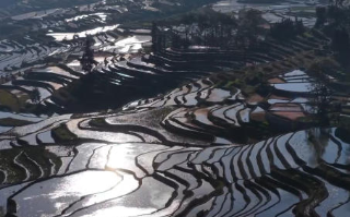 初冬时节,位于云南省红河哈尼族彝族自治州的元阳哈尼梯田正式进入最佳观赏期。每年11月至次年4月,梯田处于丰水期,层层梯田宛如明镜,沿着山势蜿蜒铺展,在冬日暖阳照耀下波光粼粼,构成壮丽夺目的“大地艺术”景观。