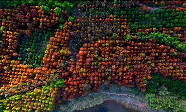 冬日的抚仙湖,澄澈湖水与斑斓水杉相映成趣,勾勒出一幅冬日限定的生态画卷。