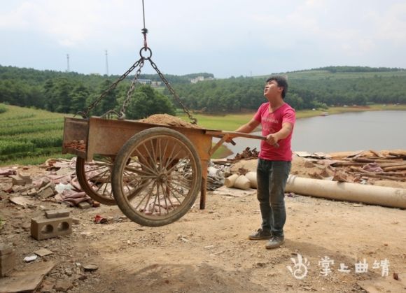 崔庆涛接到邮政快递员电话的时候,正和父母在箐口塘水库旁边的一处建筑工地上拌砂浆。