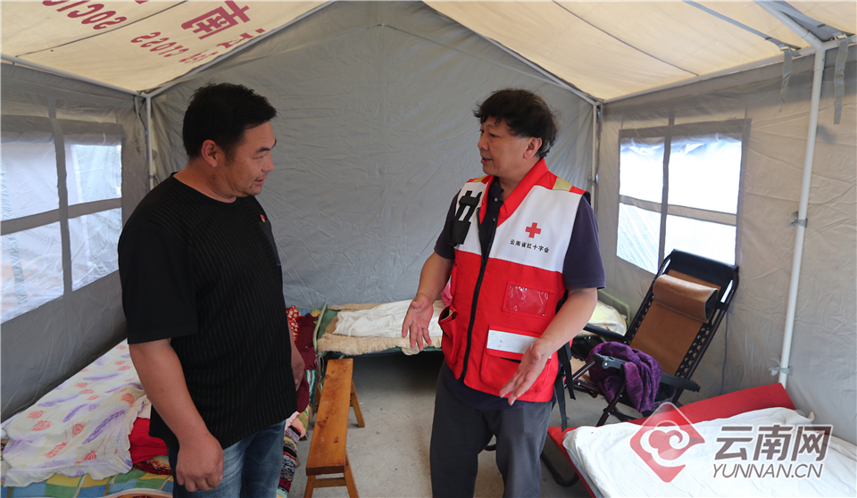 云南省红十字会抗震救灾工作组成员在通海地震灾区走访看望安置群众,及时了解救助需求。 云报融媒体记者 杨峥 摄