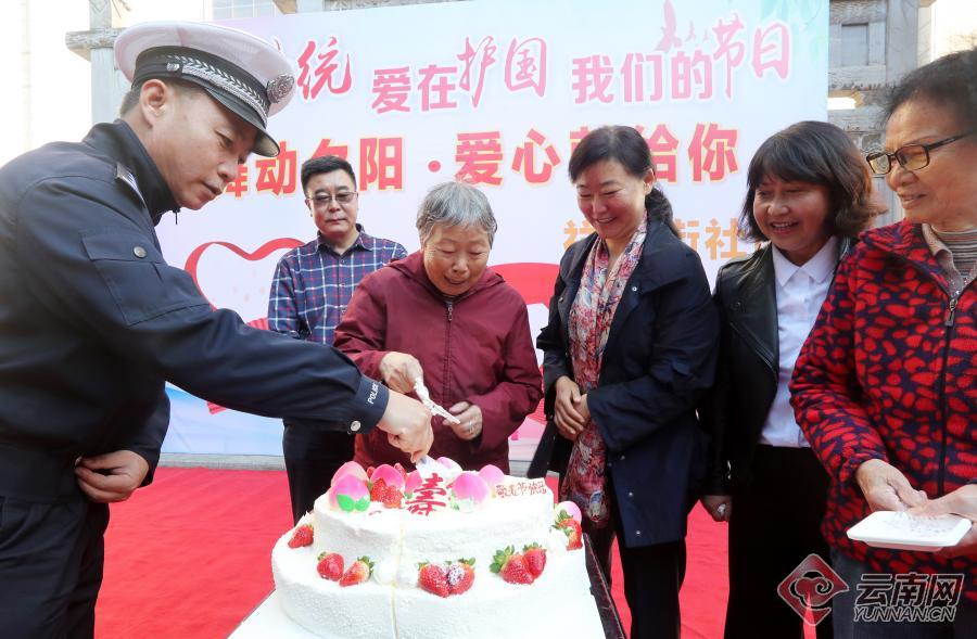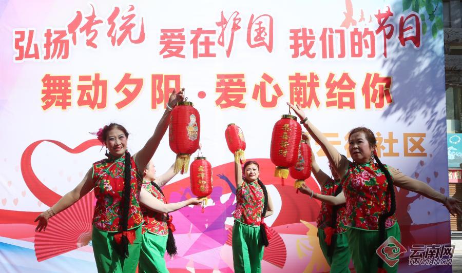云南网讯(记者 杨峥)欢歌笑语喜相聚,“舞动夕阳”迎重阳。10月16日,昆明市五华区护国街道办、祥云社区居委会与共建单位昆明第三交警大队联合在金碧公园举行“舞动夕阳·爱心献给您”迎重阳社区联欢活动。在迎接“九九”重阳节到来之际,街道办和社区特别为社区老人定制了重阳节的大蛋糕、为社区老人送来浓情甜蜜的节日慰问和祝福;欢快的舞蹈跳起来、喜庆的花灯唱起来,一百余名社区老人在文艺表演的热烈氛围中喜迎重阳节。