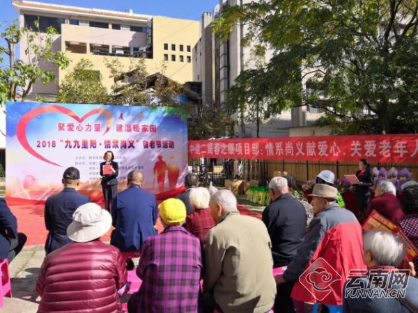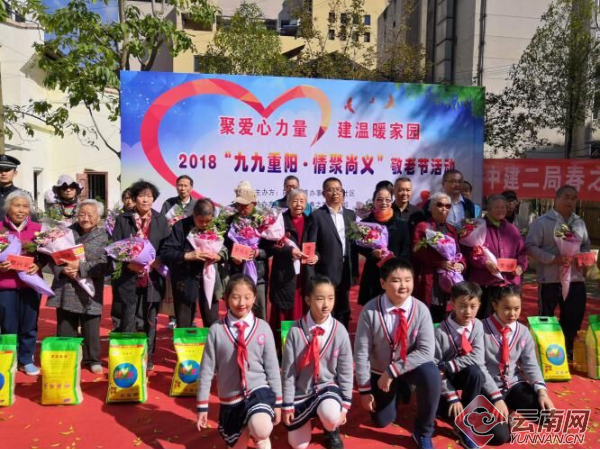 云南网讯(记者 赵元刚)日前,为弘扬中华民族尊老敬老的传统美德,昆明市盘龙区拓东街道尚义社区党委联合辖区单位昆明市公安局、中建八局、中建二局春之眼项目部、中国大地保险云南分公司等单位举办“九九重阳·情聚尚义”主题活动,为辖区老人送上节日的祝福。