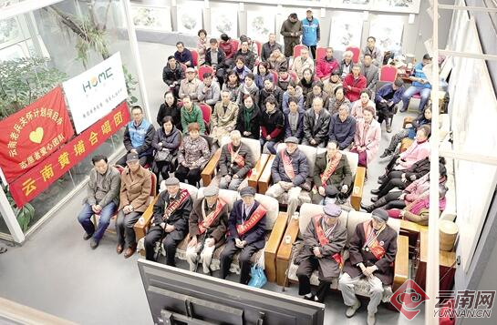 13日,昆明8位抗战老兵与各界人士在煤机厂彩云美术馆,一起观看了南京大屠杀国家公祭活动直播,云南黄埔合唱团还和老兵们一起高唱抗战歌曲,追忆激情燃烧的峥嵘岁月。(记者 高伟 摄影报道)