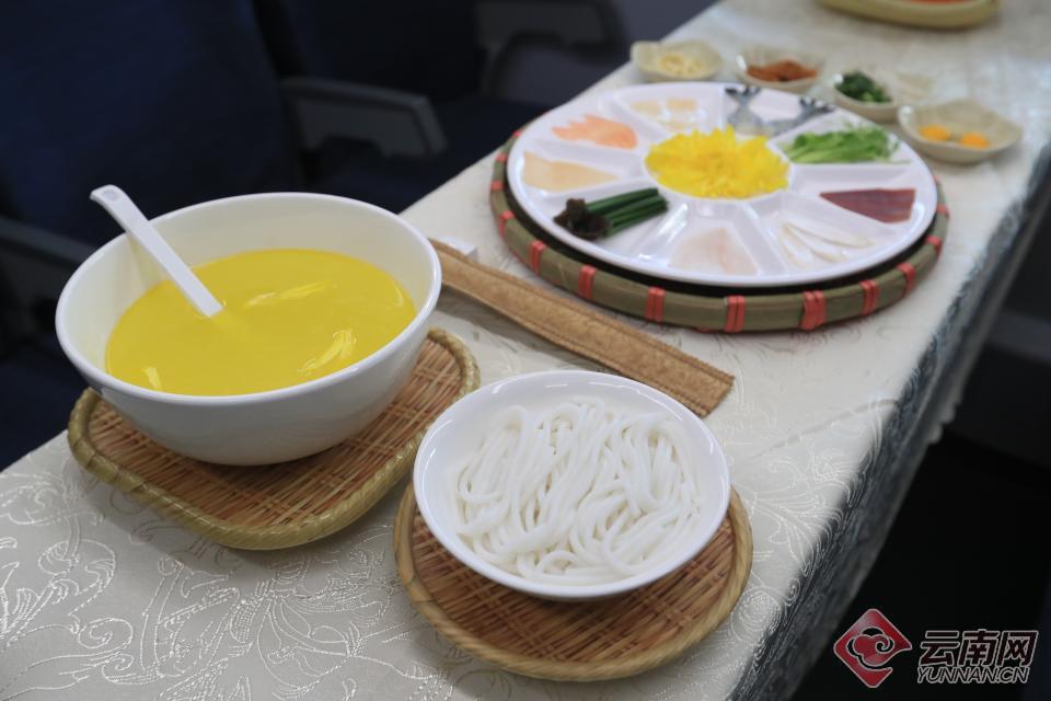 蒙自菊花过桥米线成为“绿巨人” 动车上的特色美食。