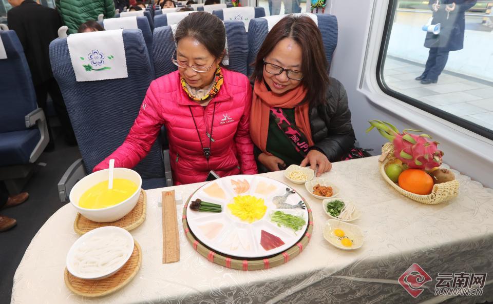 蒙自菊花过桥米线成为“绿巨人” 动车上的特色美食。