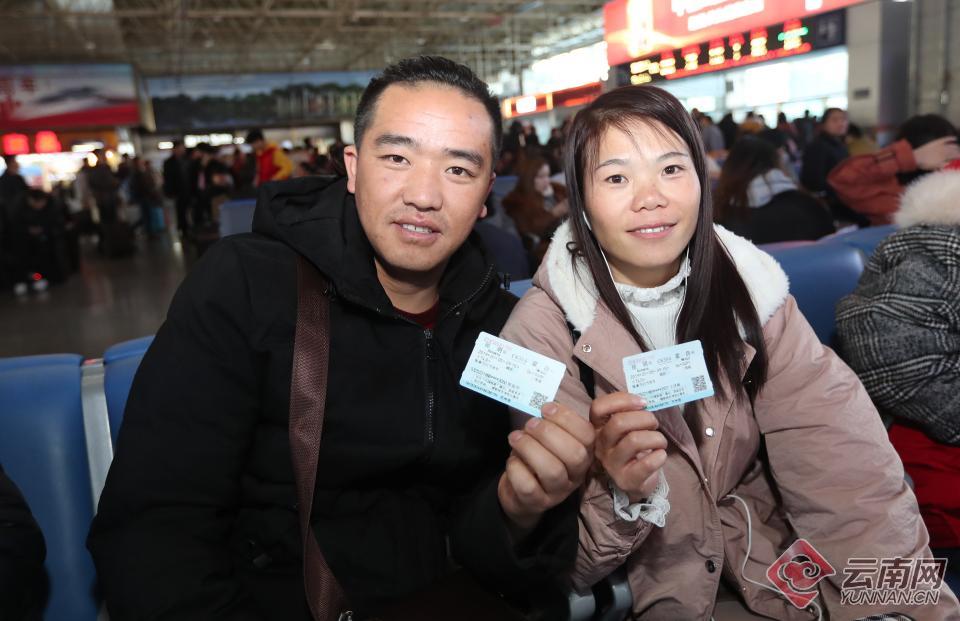 在昆明站动车候车室,首批乘坐CR200J型复兴号“绿巨人” 动车的旅客。