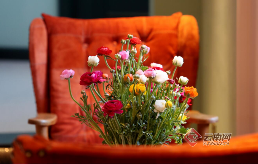 各色盛开的云南鲜花成为“对月楼”精品酒店中随处可见的艳丽色彩。