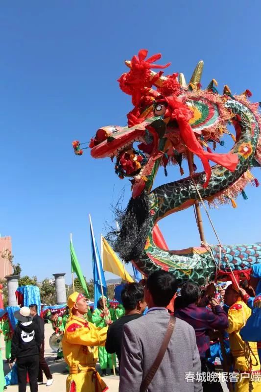 初一这天上午,由230米长的麻龙领头,施甸县的上千名群众围着5条长龙,在小滚龙和狮子的引领下,迎着施甸县城四条大街,一路游行到青牛白马广场,展示了精彩的龙狮表演。