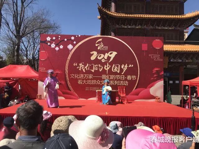 5日中午一点多,春城晚报(hai-ccwb)记者来到官渡古镇牌坊广场,远近而来的市民围在台子前,看台上唱戏。2019“我们的中国梦”文化进万家——我们的节日·春节看大戏群众文化系列活动正在举行。