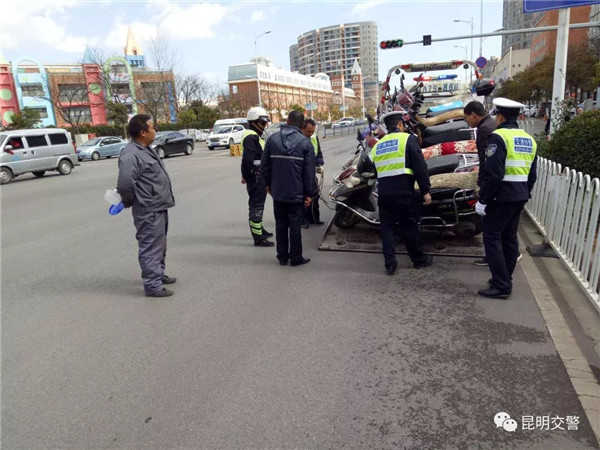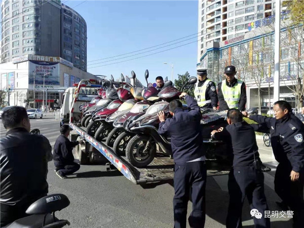 针对电动自行车非法营运,昆明交警通过视频巡查、路面查缉、严防死守、联勤联动多措并举,多管齐下,形成了严打整治合力:通过对地铁营运线路各地铁站口、商业中心区、医院、公交站台、客运场站、批发市场等重点区域进行视频巡查, 对发现电动自行车非法营运及违法停放影响通行的情况,第一时间指派辖区大队进行查处;针对电动自行车非法营运驾驶人在路口逃避检查、冲卡的行为,昆明交警组建工作专班,每日对主要路段进行巡逻查缉,发现非法营运嫌疑,拦车对驾驶人和乘车人分别检查取证,违法事实清楚的立即扣留车辆;各大队结合辖区重点区域,每天安排足够警力进行不间断管理,在重点查处电动自行车非法营运的同时,严查其他电动自行车违法,进一步维护电动自行车通行秩序;积极联合轨道分局、派出所和城管部门开展联合整治,同时对整治工作开展督察检查,推动整治工作各项措施落实到位。