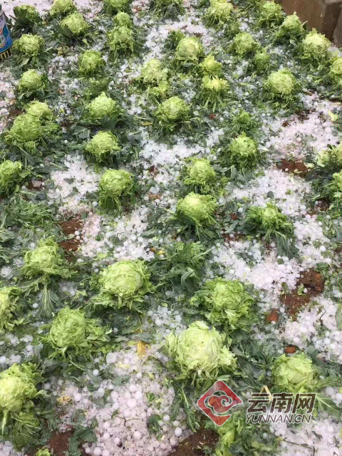 云南金平县境内遭受冰雹袭击 冰雹堆积厚度最高达30厘米