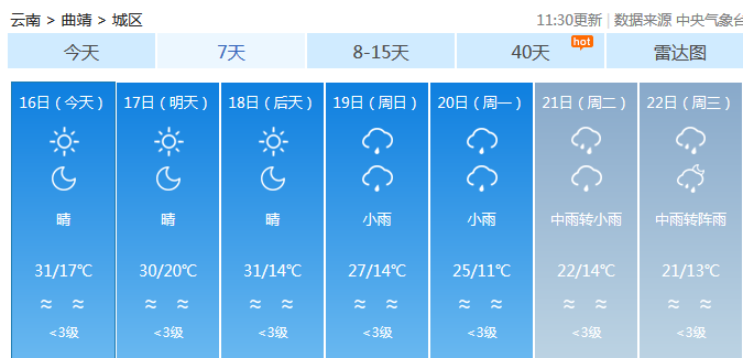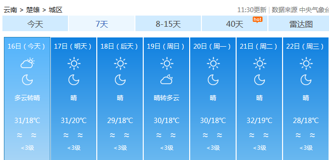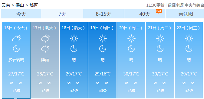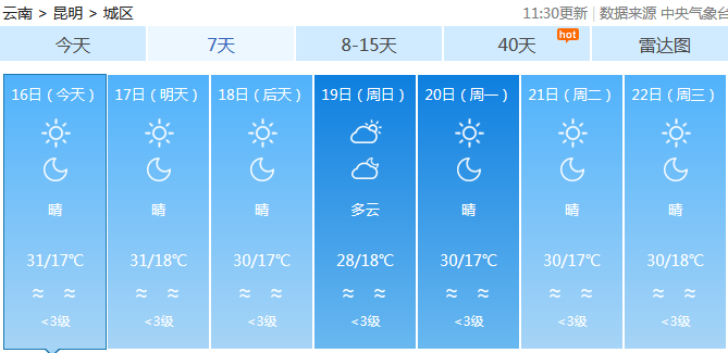 未来24小时预报:丽江、大理东部、楚雄、昆明、玉溪北部5级,大理西部、临沧、普洱、玉溪南部、昭通南部、曲靖西北部、红河北部4级,怒江南部、保山、德宏东部、曲靖东部和南部、文山北部、红河中部、西双版纳3级,其它地区1~2级。
