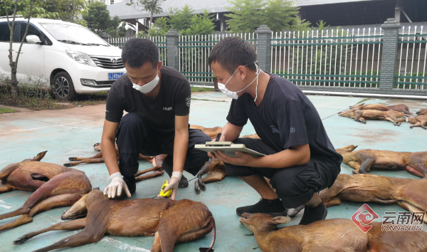 森林公安民警经过鉴定,确认这些动物死体都是国家三有保护动物赤麂,进一步检查发现,这些赤麂的身上均有数量不等的枪眼,少的一两个,多的四五个,由此判断这些动物是在野外被人用枪支猎杀而来。询问过程中,两起案件的违法嫌疑人交代,这些赤麂是他们通过与境外人员联系后,由境外人员带到边境线附近卖给他们的,本打算把这些东西带出江城县外销售获利,未曾想刚走没多久就被查获。
