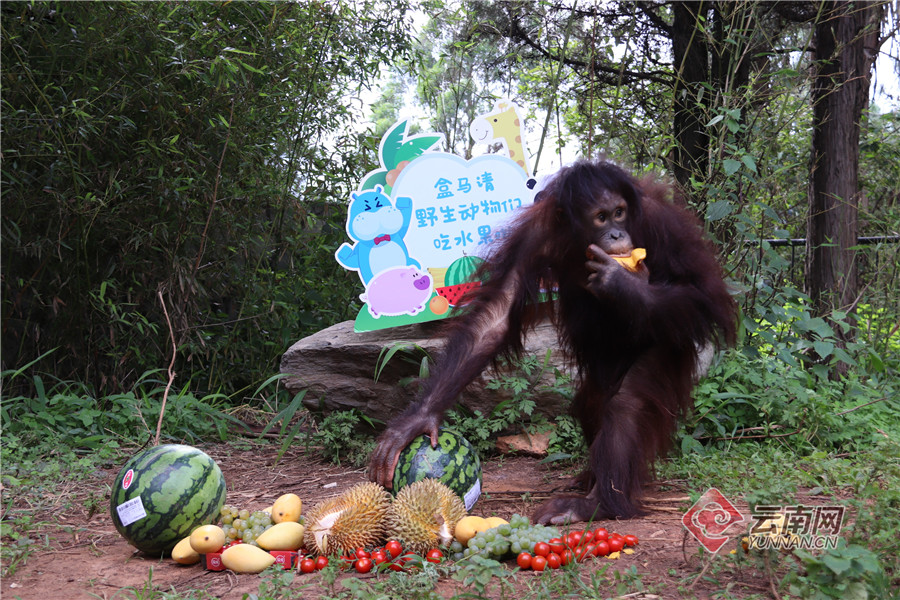 说起消暑,最甜美的体验莫过于水果自助大餐了。盛夏时节,多种水果纷纷上市,使大家大饱口福。刚刚来到昆明的盒马鲜生,带着他们在全世界的水果产地出产的应季水果到了云南野生动物园。在现场,工作人员将盒马鲜生带来的榴莲、芒果、水晶葡萄、西瓜、糖果番茄等多种来自“二毛”家乡或国内本土的水果,为“二毛”搭出了一份丰盛的水果“自助大餐”。