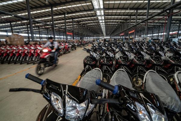 工人在德宏片区一家摩托产业园生产车间装配摩托车(11月4日摄)。