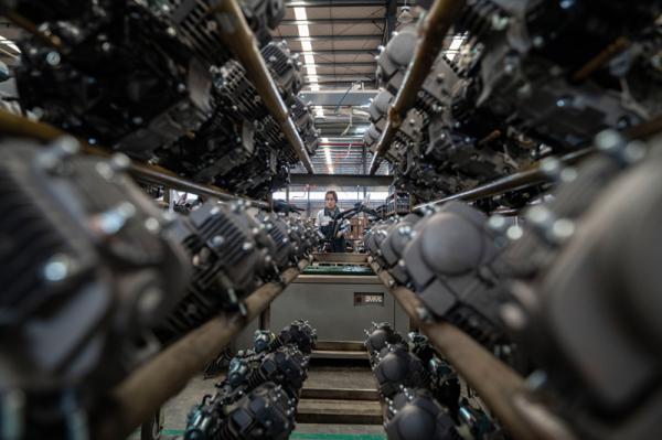 工人在德宏片区一家摩托产业园生产车间装配摩托车(11月4日摄)。