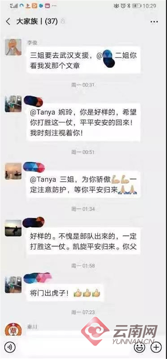 本来,陈琬玲并不想告诉亲人朋友自己出征的消息,怕他们担心,特别是对已经82岁的老父亲。但身为老党员、老干部的父亲不知从哪里得知了她出征的消息,还在家族微信群里鼓励她:“好样的,不愧是部队出来的,一定打胜这一仗,凯旋归来。”