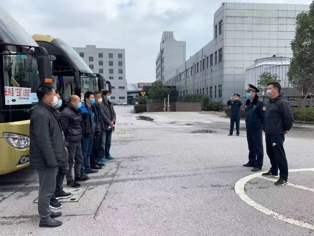 返工人员也被要求执行严格的规定,他们出发前需要测量体温,在运输中全程佩戴口罩,回到长兴后将严格按照当地规定严格履行交接程序。