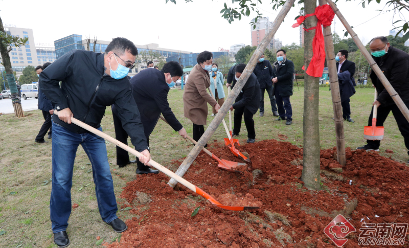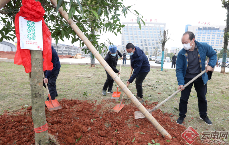云南医疗队队员和咸宁中心医院医护人员共同种下“爱心树”和“友谊树”