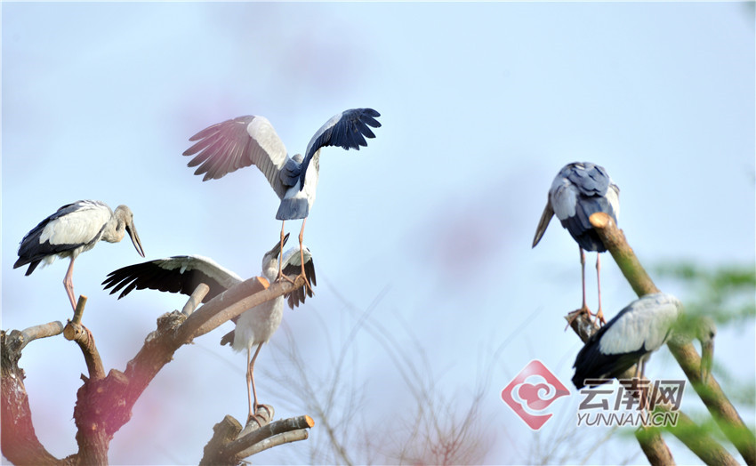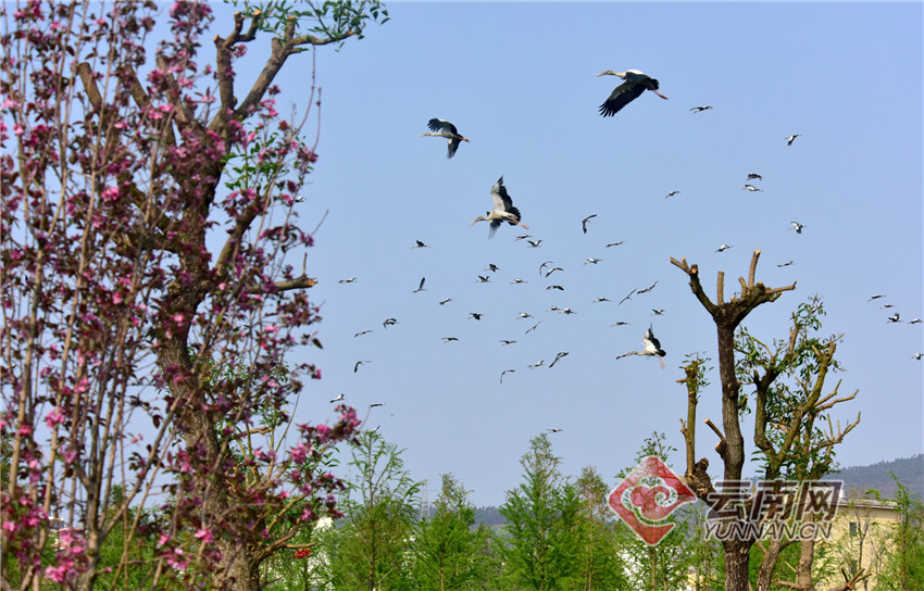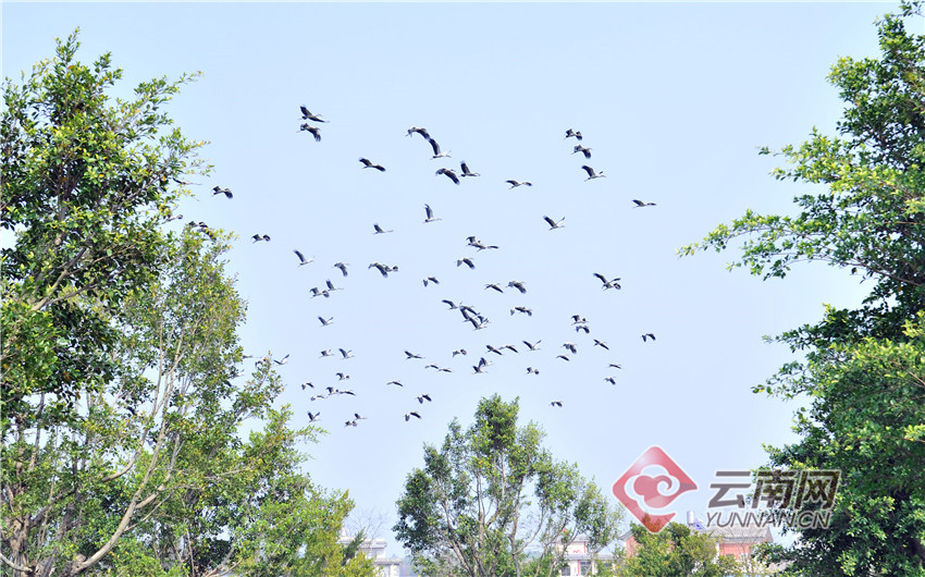 近年来,弥勒市大力推进生态旅游城市建设,全市生态环境得到明显改善,多种野生鸟类纷纷前来栖息。据了解,这群钳嘴鹳已在弥勒甸溪湿地栖息一周左右,附近村民和前来游玩的市民都觉得钳嘴鹳的“来访”给本就美丽的甸溪湿地增添了生态活力。