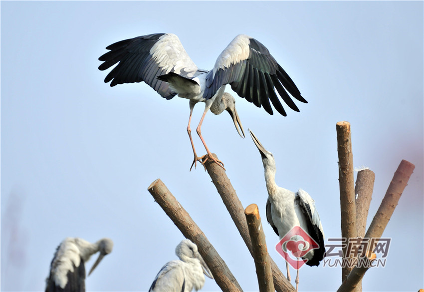 甸溪湿地数千只钳嘴鹳形成靓丽风景线