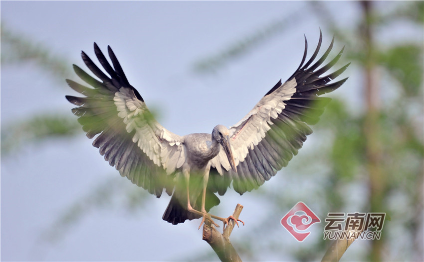走进公园,钳嘴鹳正安静地停在树枝上,它们或静静站立,远眺前方;或缩着脖子,垂着嘴巴,悠然自得。如遇动静,它们便会快速打开双翼,双脚一蹬,快速“组队”飞离,同时在空中盘旋,瞬间形成一幅生态和谐的画卷。
