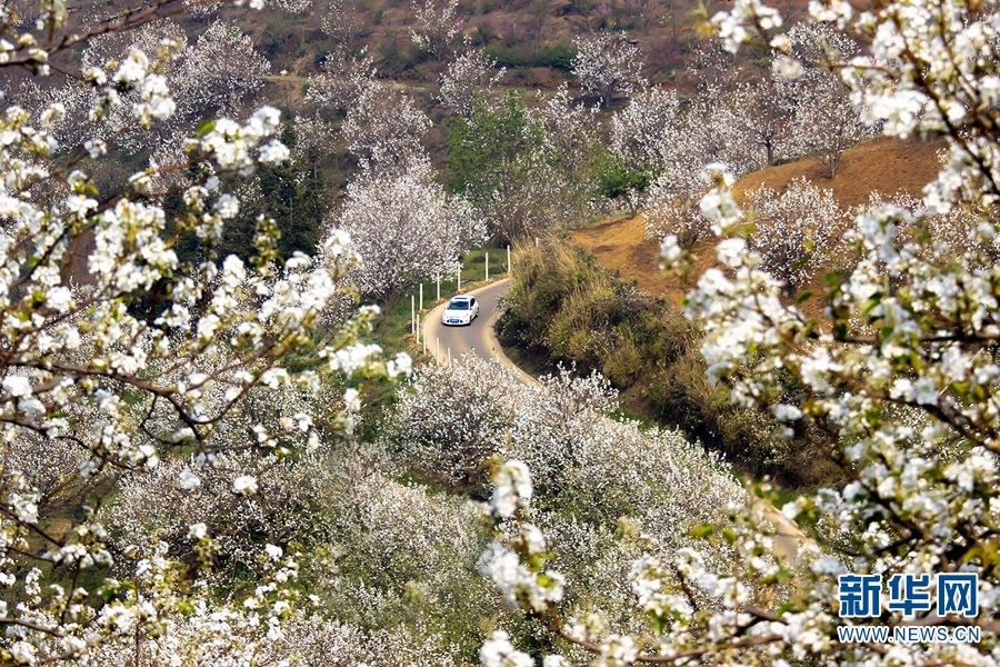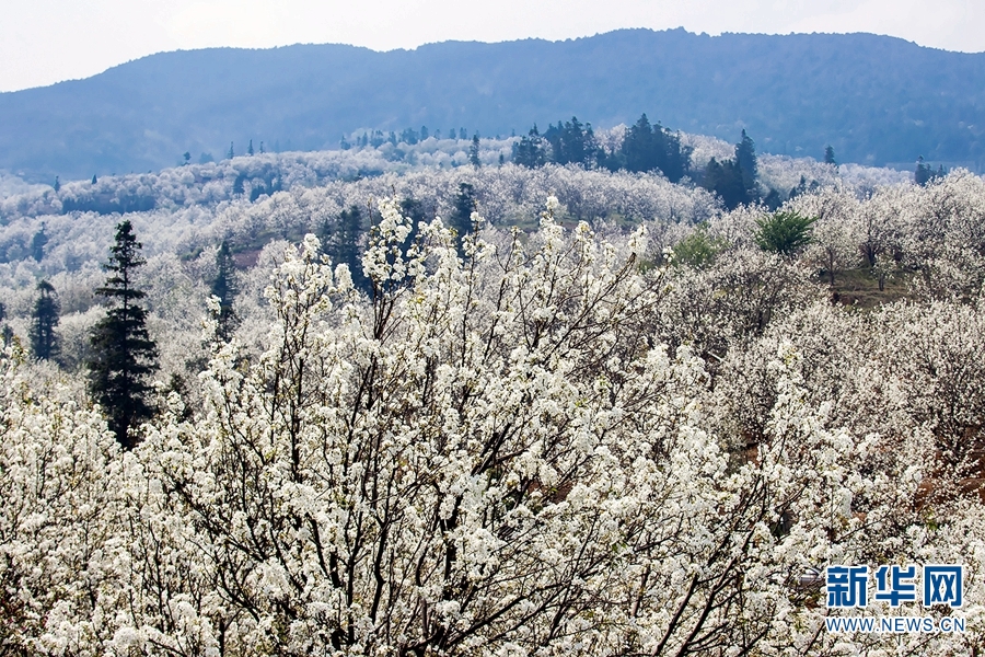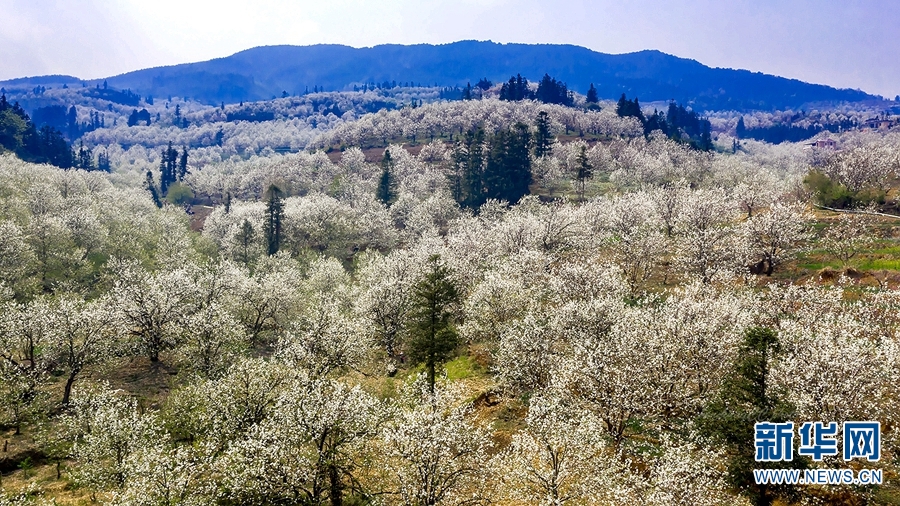 图为3月21日拍摄的加级寨梨花谷,花开似雪,美不胜收。新华网发(陈畅 摄)