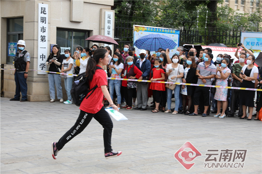 昆一中考点,考生跑向家长。记者 刘畅 摄
