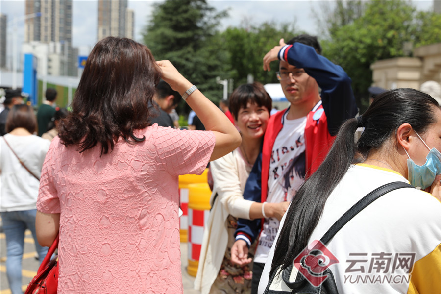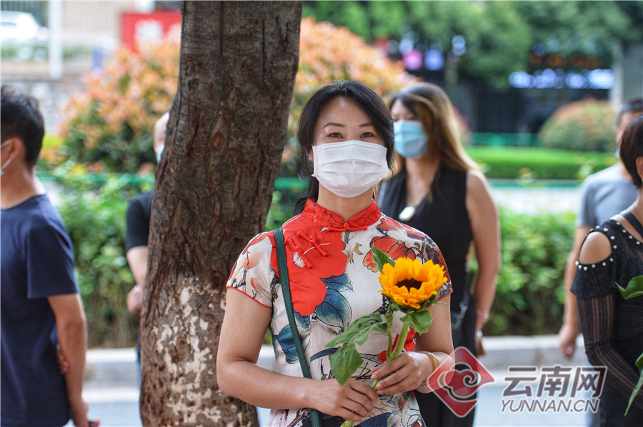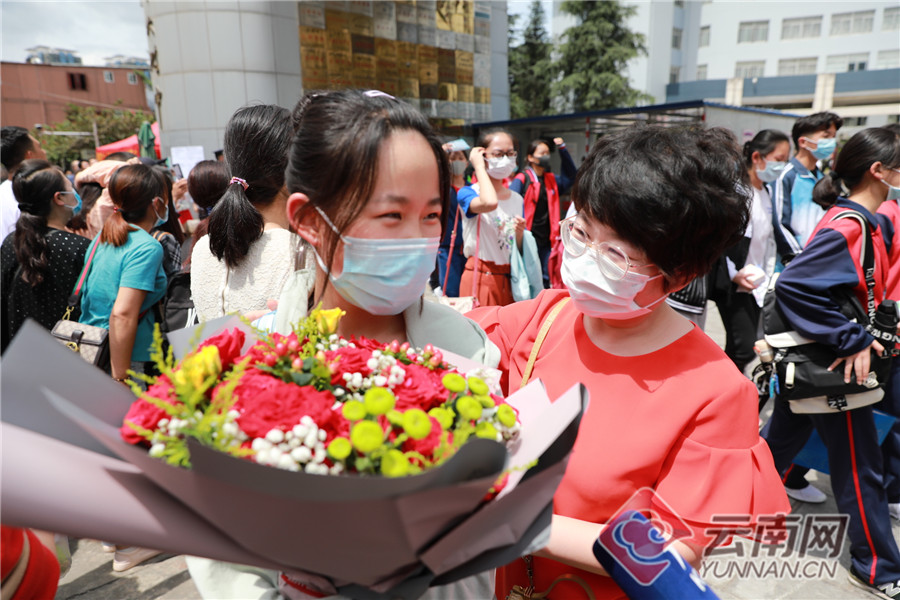 云大附中考点,家长手持鲜花等待考生。记者 张成 摄