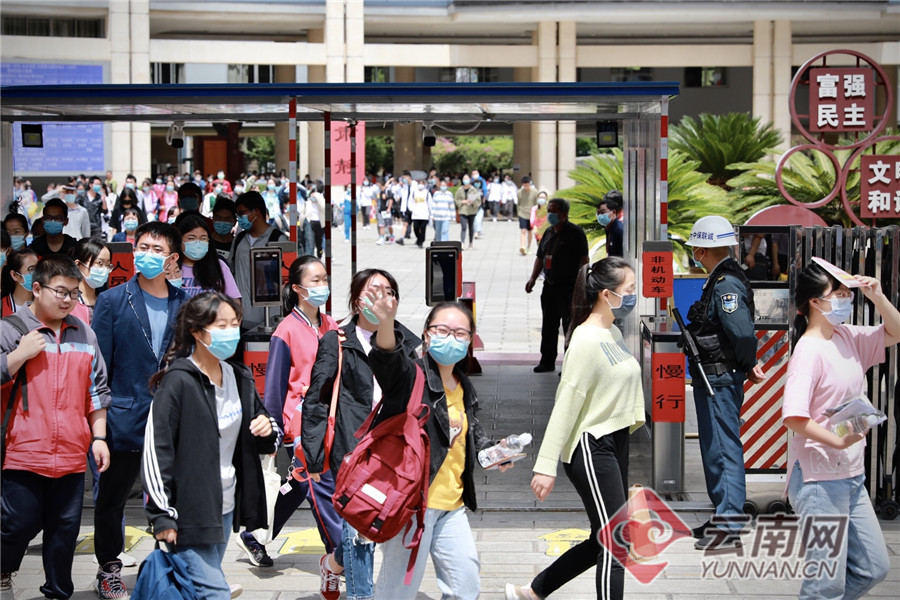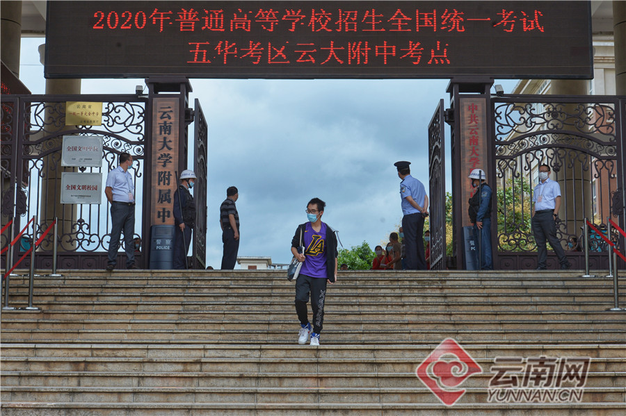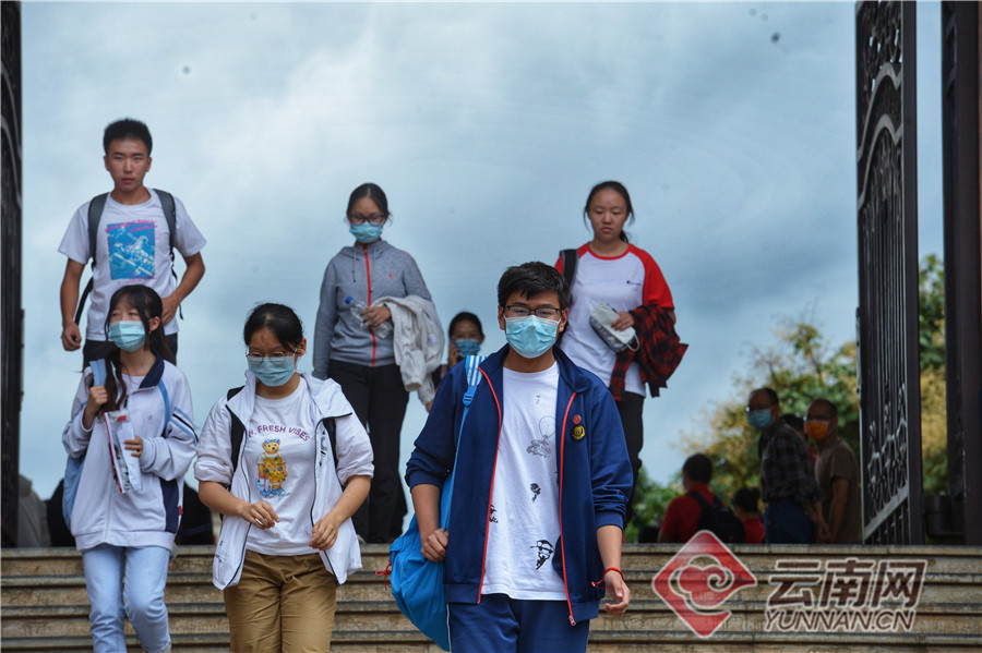 云大附中考点,考生有序走出考场。记者 张成 摄