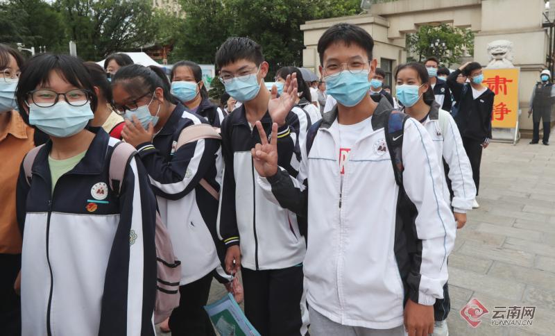 在昆明市第一中学考点,结束考试的考生心情放松地走出考场。