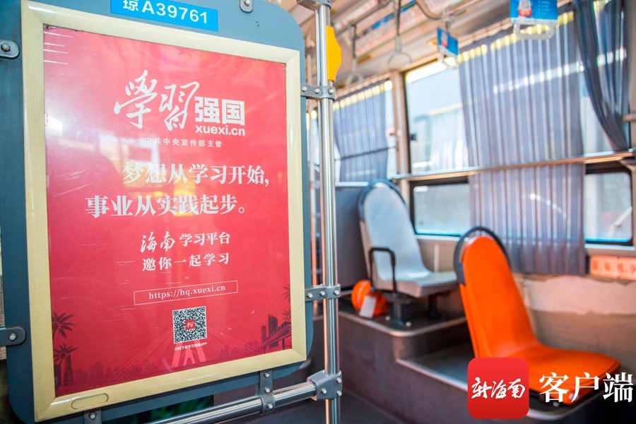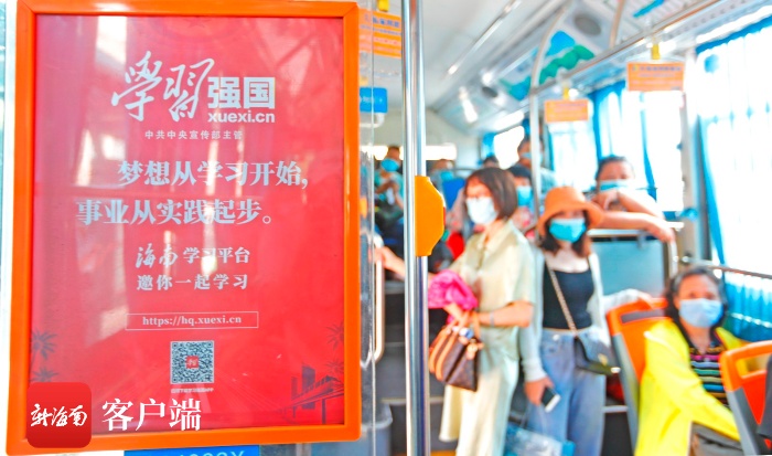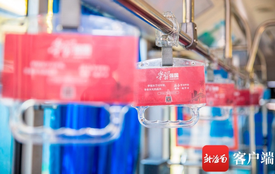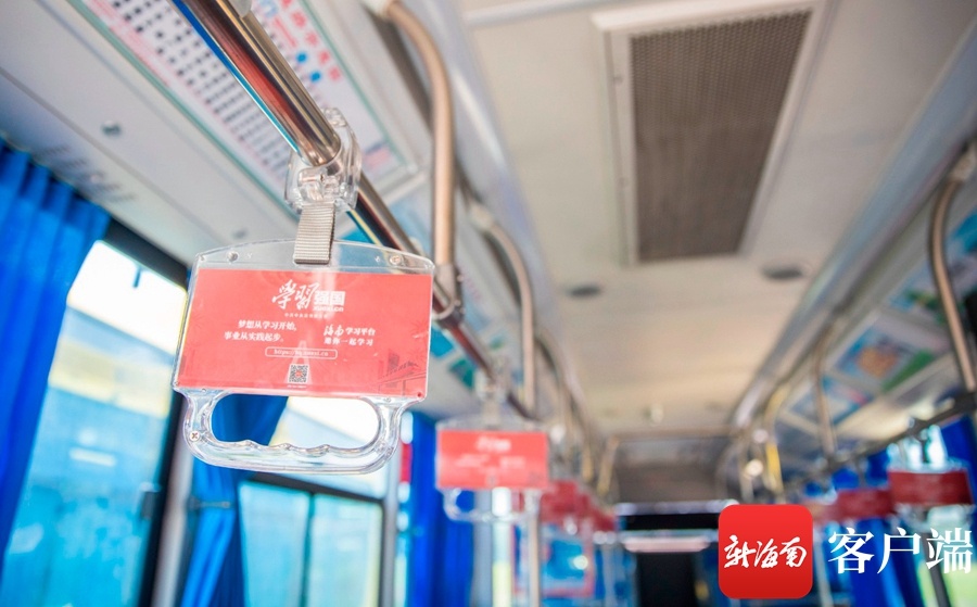 据悉,“学习强国”海南学习平台为充分发挥公交车流动分散、辐射面广、贴近群众的优势,专门选择站点多、客流量大、穿越主城区公交车,打造了“学习强国”主题公交车。