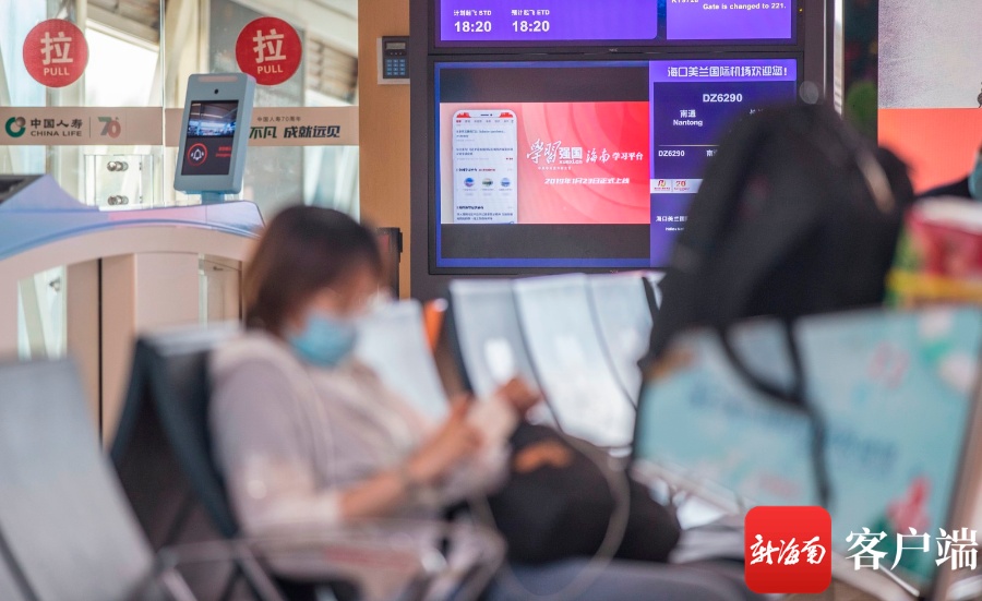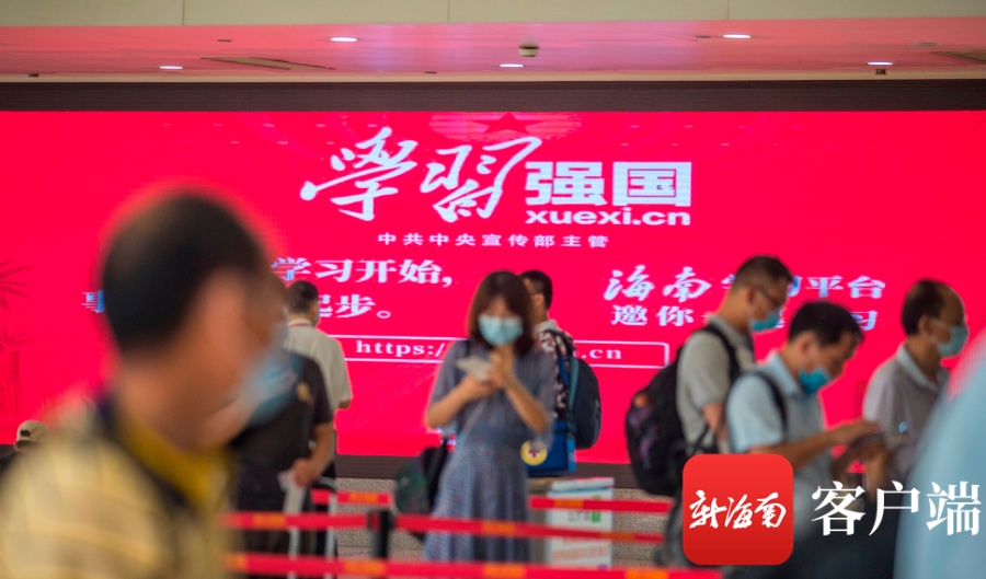 “学习强国”海南学习平台刷屏海口美兰国际机场。记者 刘洋 摄