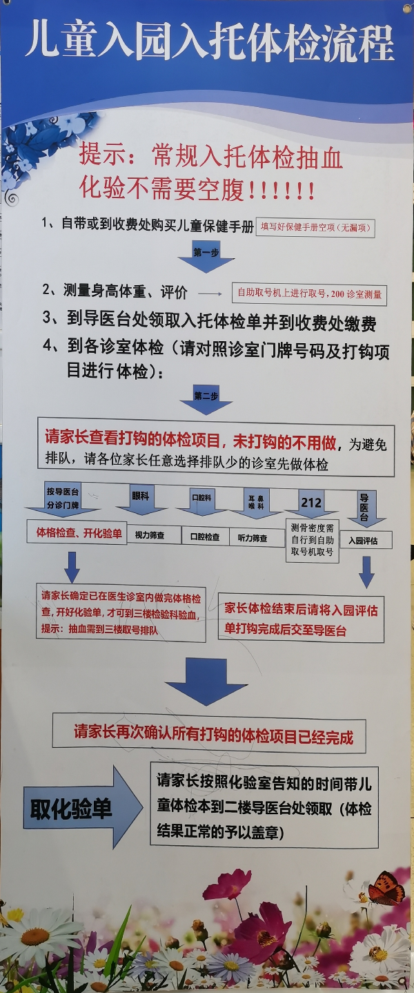 体检的整个流程跟往年相比没有太大变化,只是新增了网上预约的服务,家长可通过微信搜索“福佑母婴”公众号,最早可提前一周进行预约。预约成功后,根据预约时间分时段到昆明市妇幼保健院(昆明市妇幼健康服务中心)进行体检即可。