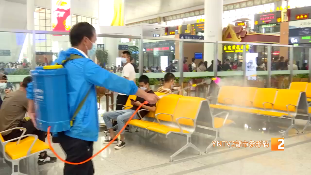 除此之外,昆明南站还开展了公共场所清洁消毒全覆盖,严防传染性疾病传播。
