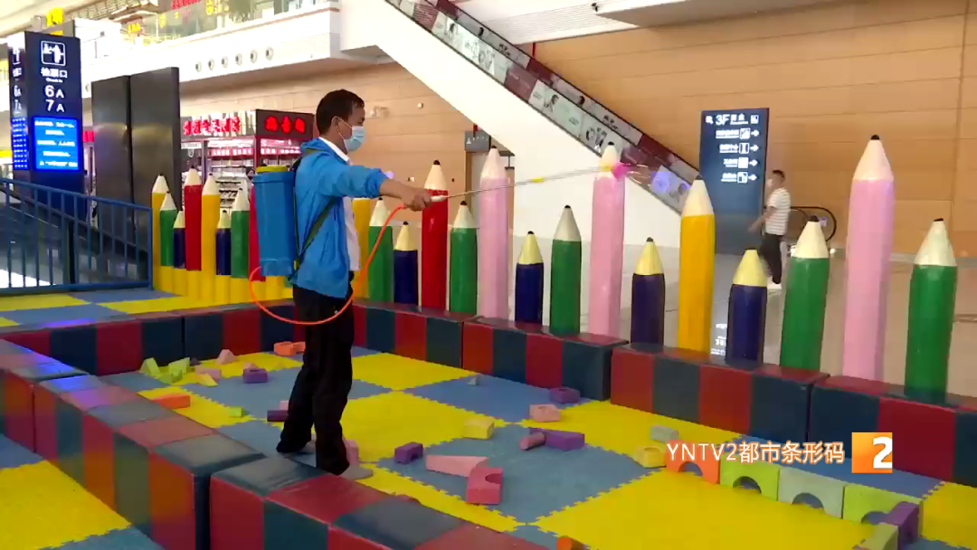 昆明南站值班站长 胡娜娜:“消杀工作我们车站是分为两个时段,早8点和晚6点,一天消杀两次。局部区域我们这边有母婴候车室和儿童游乐园,这边我们是按照一个小时一次消杀。”
