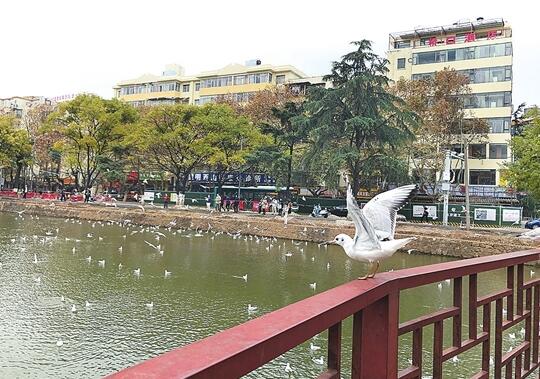 11月2日中午,记者来到环西桥,看到200多只红嘴鸥在岸边盘旋,十几位市民手举鸥粮,开始喂鸥。