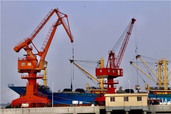 远洋渔船在码头卸货