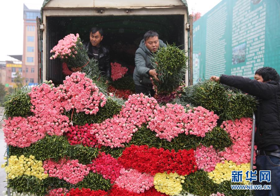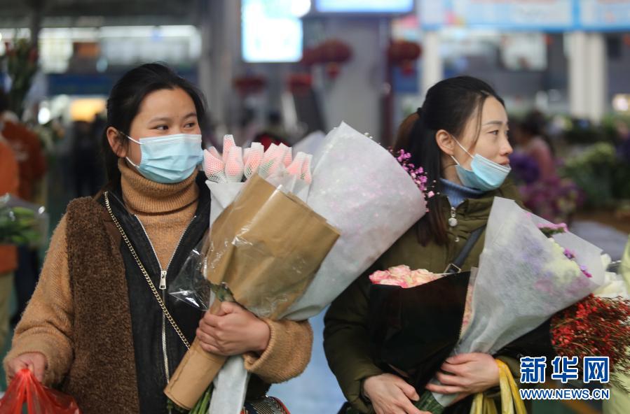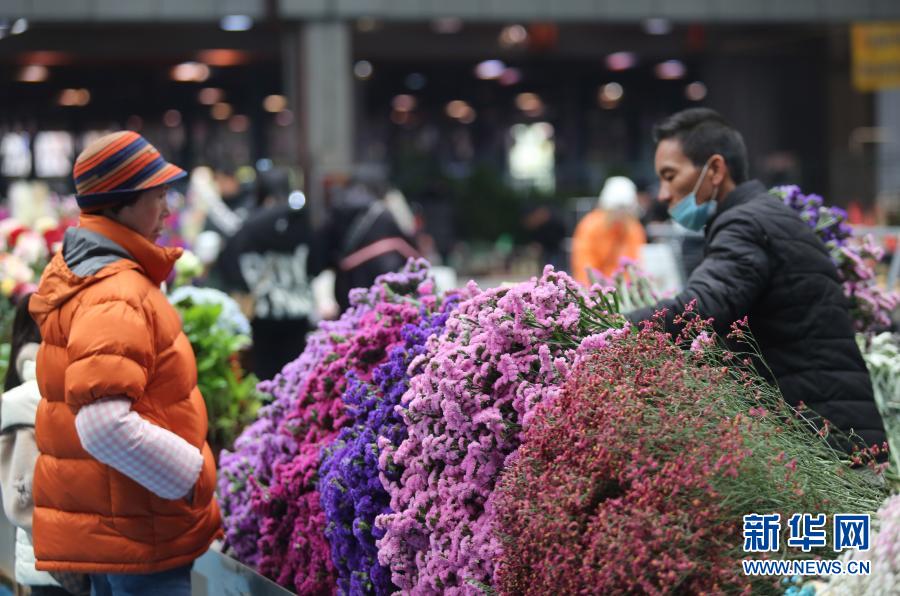2月9日,市民在昆明斗南花卉市场购买鲜花。