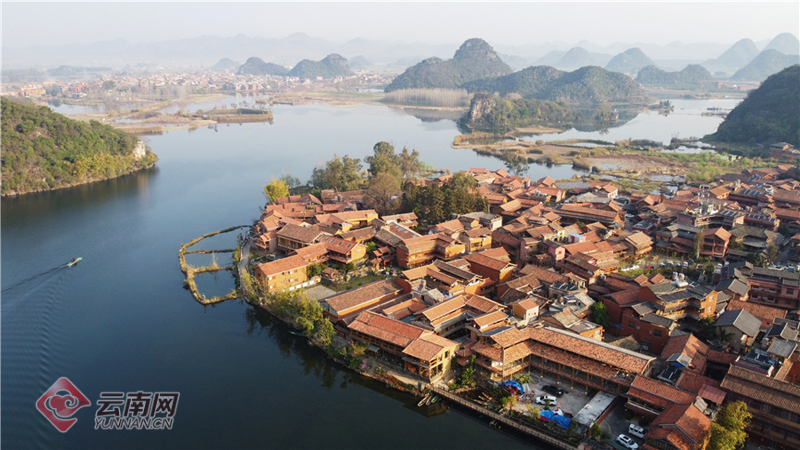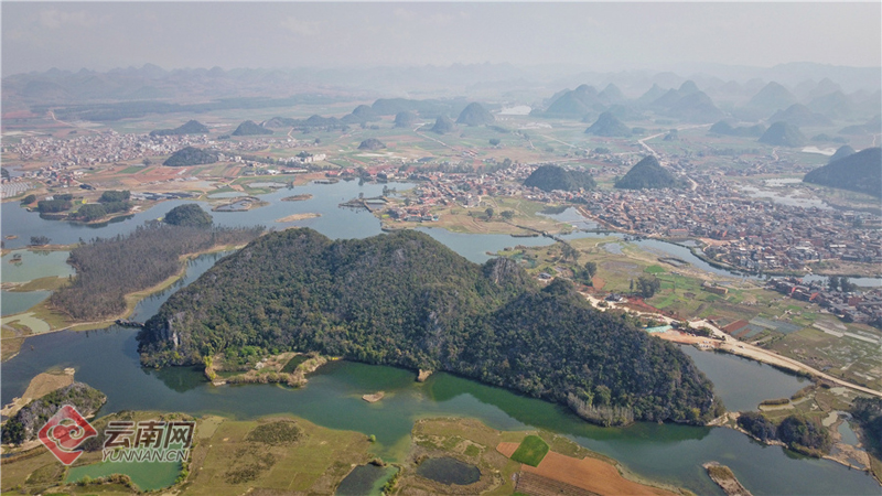 春日三月,云南省文山壮族苗族自治州丘北县普者黑国家湿地公园内层峦叠嶂,山水林田湖草融为一体。蓝天、碧水、村落,一幅绿水青山就是金山银山的美丽画卷,在春色中徐徐展开。